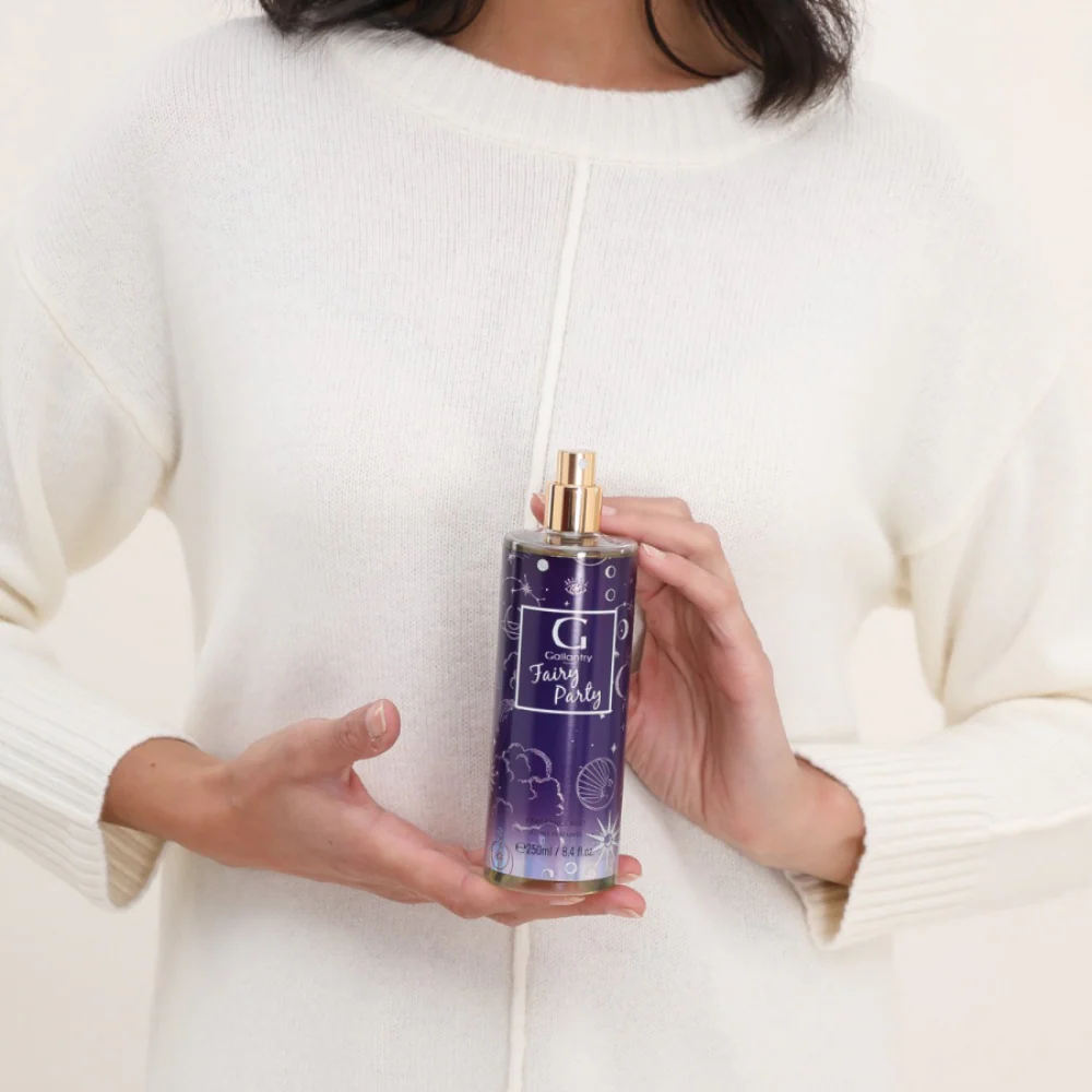 Cette brume parfumée de 250 ml est idéale pour être vaporisée sur la peau ou les vêtements, offrant une sensation de fraîcheur tout au long de la journée. Laissez-vous séduire par l'univers enchanteur de la Brume Gallantry Fairy Party et transformez chaque moment en une expérience magique.