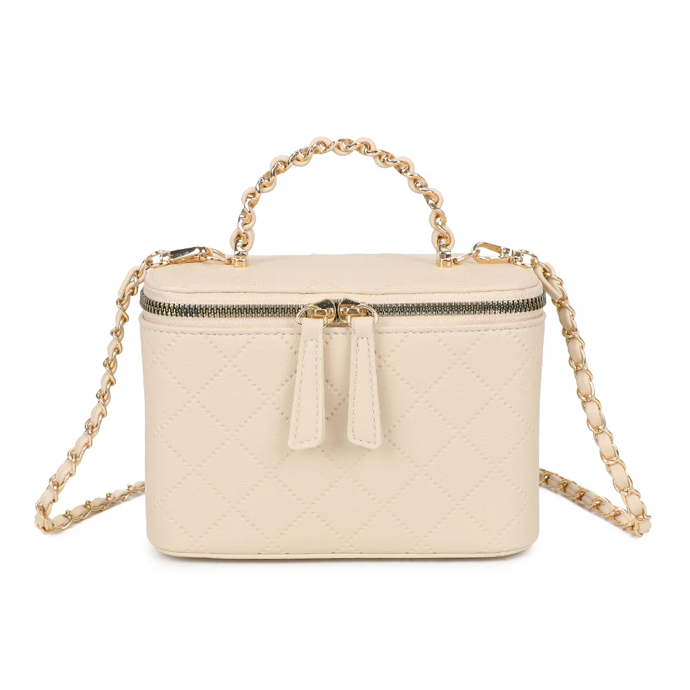 Le Mini Bambino revisite le style vanity avec une silhouette compacte et structurée. Son motif matelassé élégant, associé à une chaîne tressée façon cuir, apporte une touche raffinée. Fabriqué en simili cuir de qualité, il est à la fois résistant, léger et facile à entretenir.