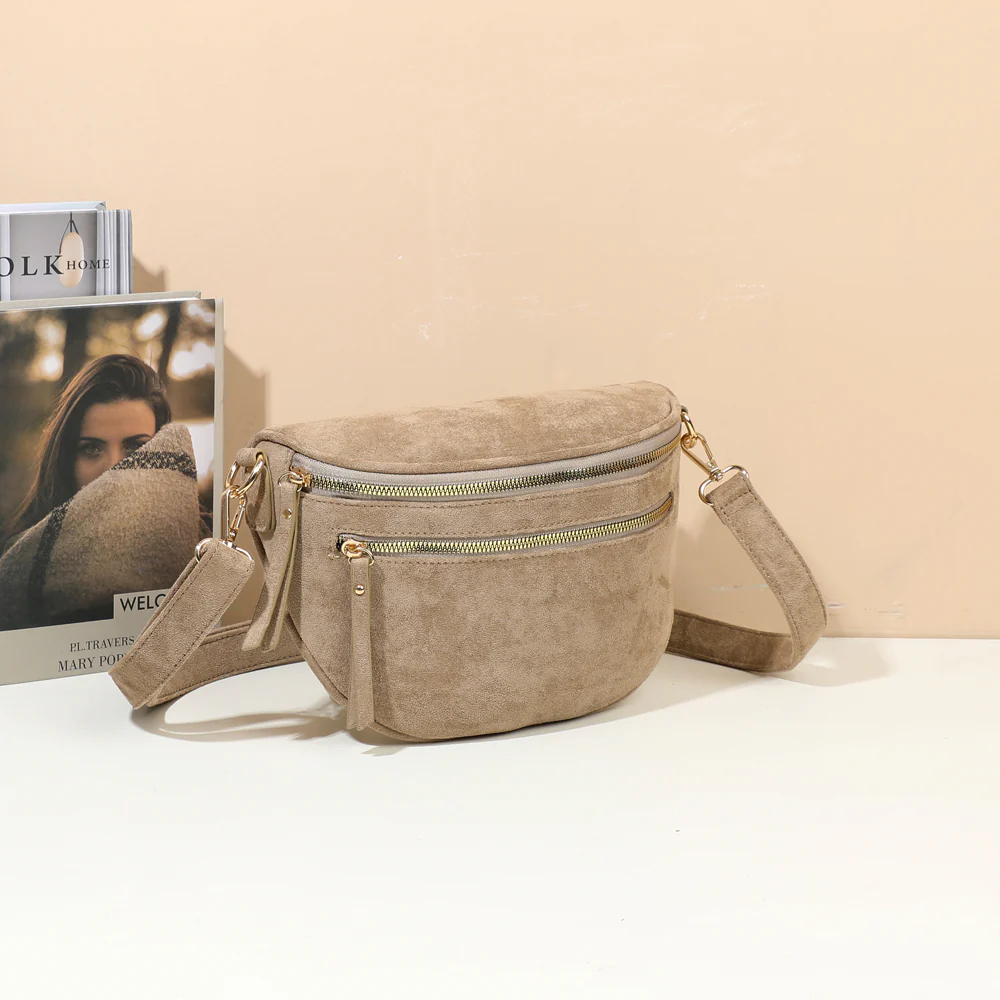 Doté de deux poches zippées sur le devant et d’un compartiment principal spacieux, il permet d’organiser facilement vos essentiels : téléphone, portefeuille, maquillage ou clés. Sa bandoulière ajustable assure un porté confortable, que ce soit en travers du corps ou à l’épaule.
