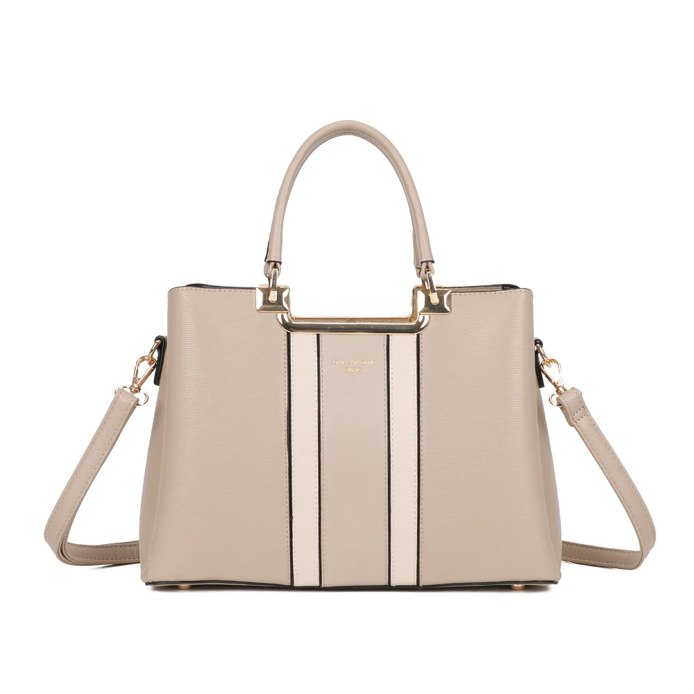 Symphonie Graphique (DQ-8605-4) de la marque Gallantry est un sac à main structuré et raffiné, parfait pour les femmes modernes et actives. Son design à bandes contrastées élégantes lui confère une allure sophistiquée, tout en restant fonctionnel.